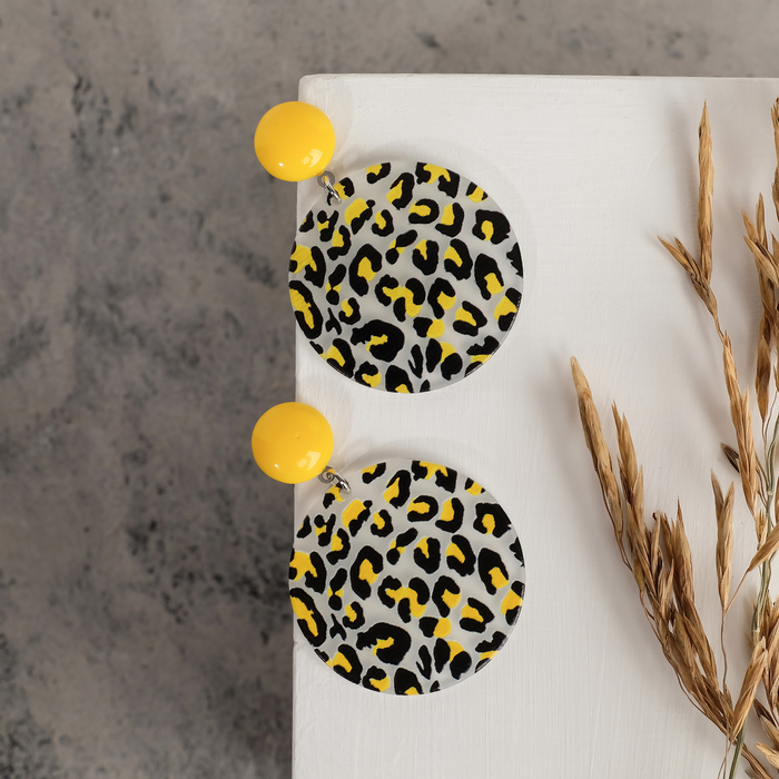 Серьги пластик «Танзания» круги гепард, цвет чёрно-жёлтый, d=4 — Характеристики