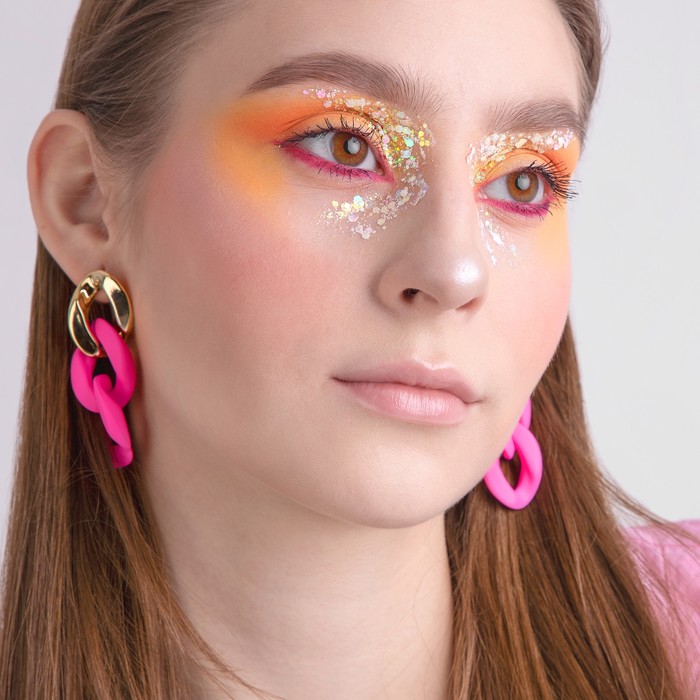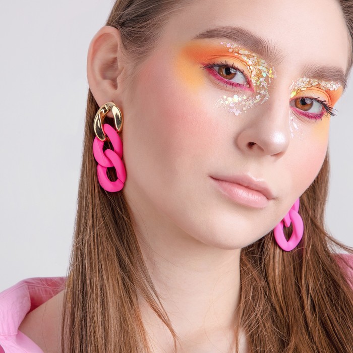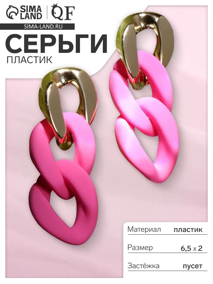Серьги пластик «Цепь» дива, цвет ярко-розовый в золоте — Характеристики