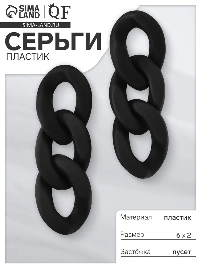 Серьги пластик «Цепь» восторг, малая, цвет чёрный — Характеристики