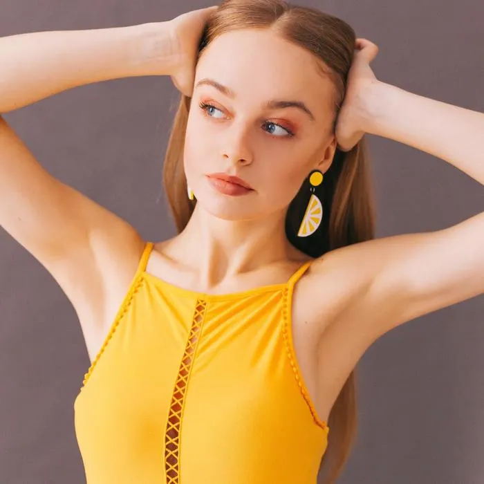 - Яркий дизайн: лимонная тематика придаёт серьгам игривый и жизнерадостный вид, идеально подходящий для весеннего и летнего сезона.
