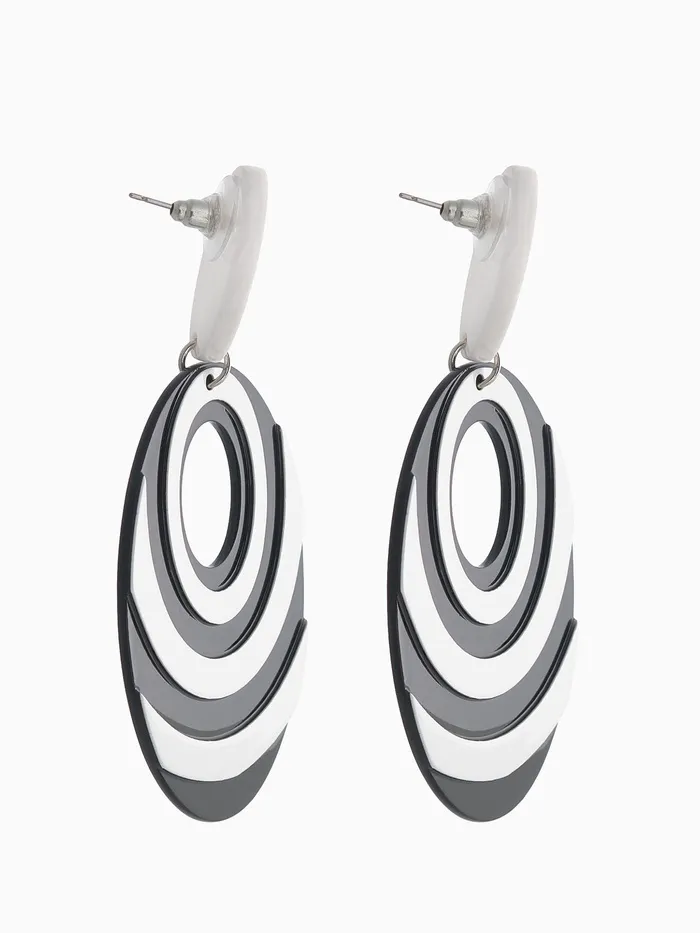 Серьги пластик «Вивьен» спираль-овал, цвет чёрно-белый