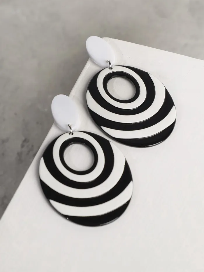 Откройте для себя мир стильных аксессуаров с серьгами в форме спирали и овала! Эти уникальные украшения, выполненные из качественного пластика в чёрно-белом цвете, добавят яркий акцент вашему образу и подчеркнут вашу индивидуальность.