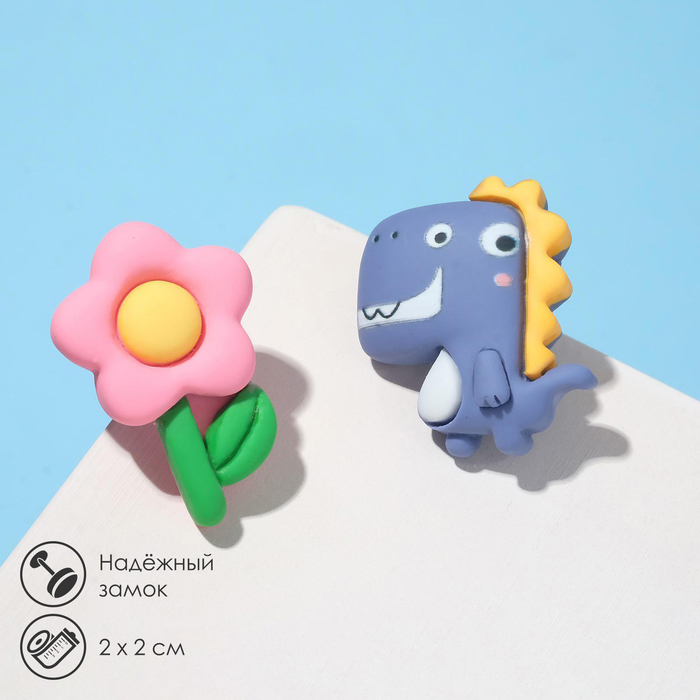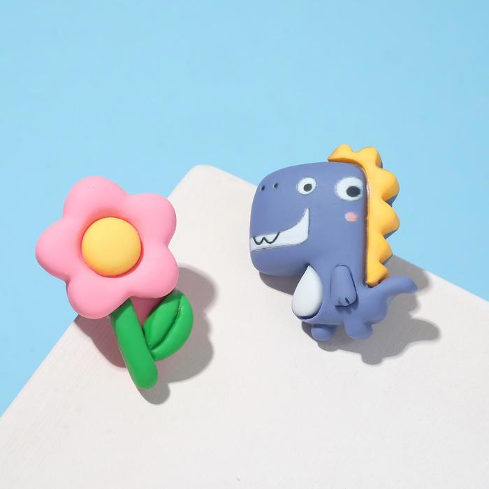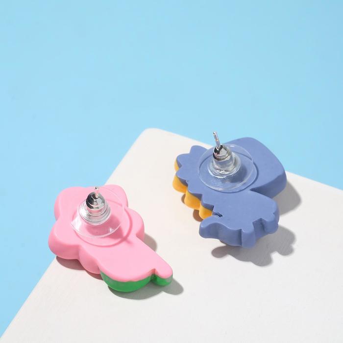 Серьги пластик «Вкусности» динозаврик и цветочек, цвет сине-розовый — Характеристики