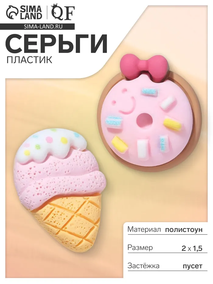 Серьги пластик «Вкусности» пончик с мороженым, цвет бело-розовый — Характеристики