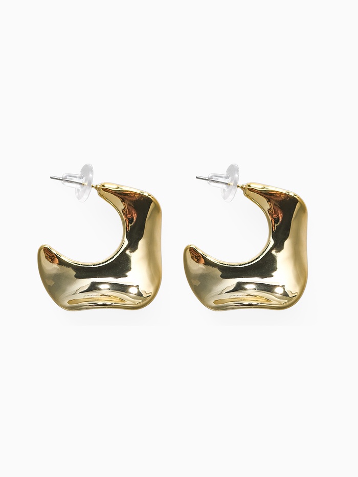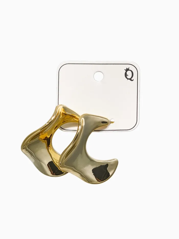 Золотистые серьги-кольца с волнообразной текстурой — воплощение современного минимализма с тонким абстрактным акцентом. Их длина 3,5 см и лёгкий пластик создают ощущение воздушности и естественного блеска, который подчёркивает изысканный вкус и стремление к уникальности.
