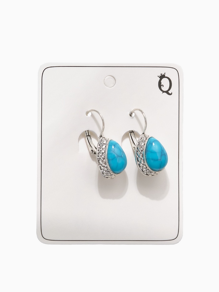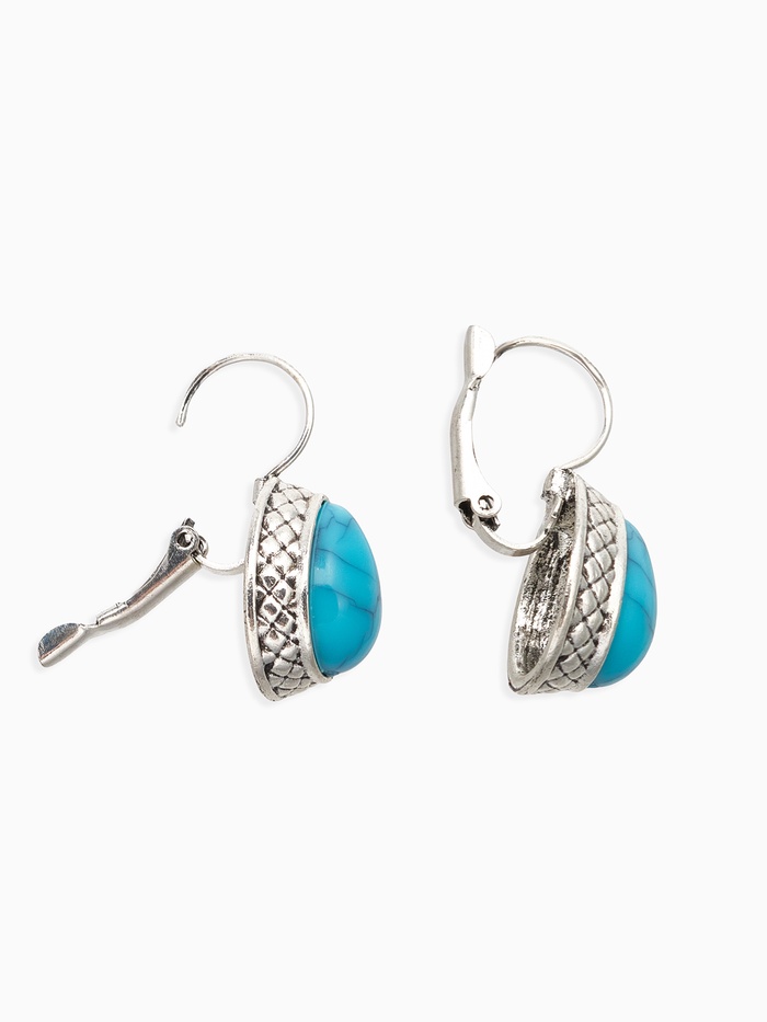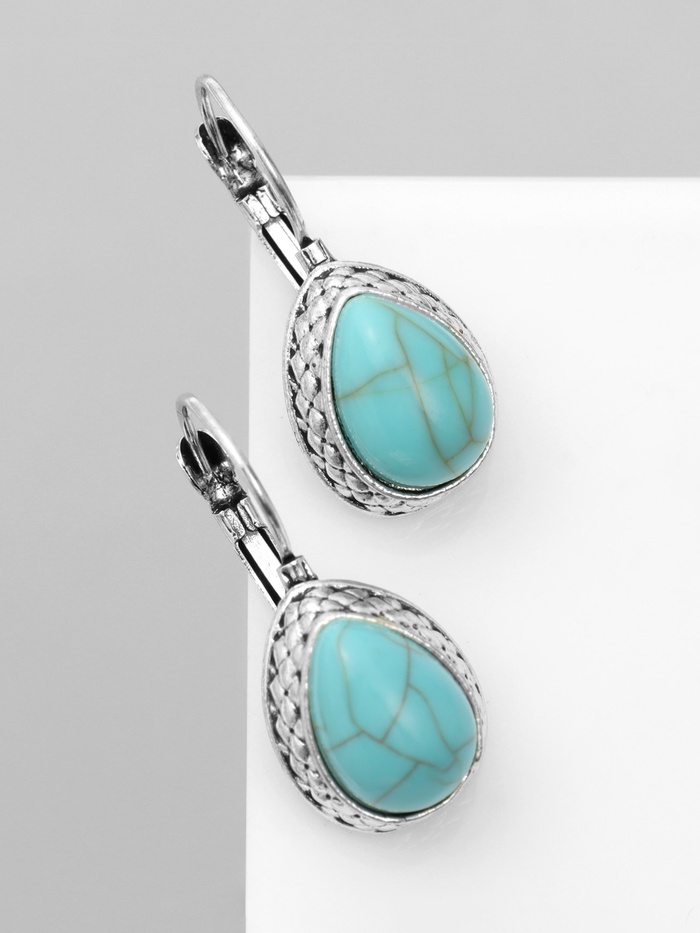 Серьги под натуральный камень «Этника» капля бирюзы, цвет голубой в чернёном серебре — Характеристики