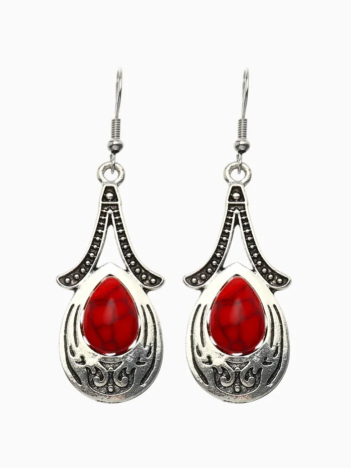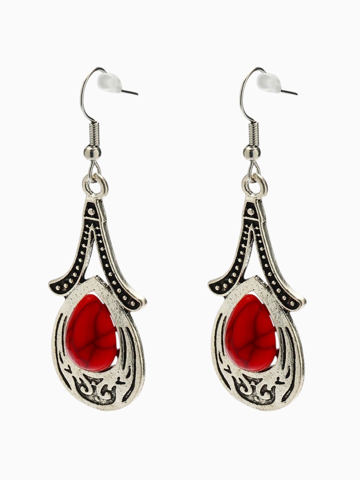 Серьги под натуральный камень «Этника» объёмная капля, красные в чернёном серебре — Характеристики