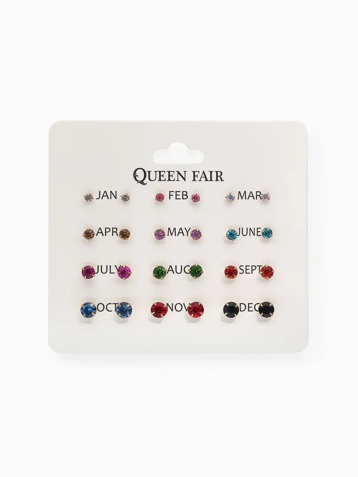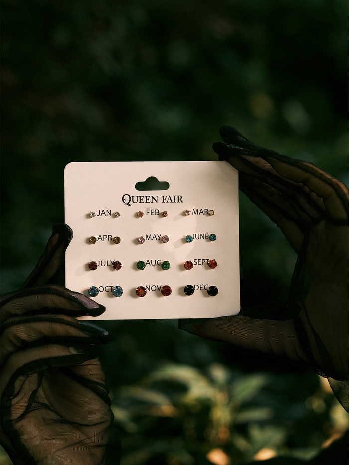 Набор из двенадцати пар миниатюрных разноцветных серёжек-гвоздиков с золотистым покрытием предлагает разнообразие стразовых акцентов диаметром от 3 до 6 мм. Компактные украшения длиной около 0,5 см подойдут для женщин и девочек, дополняя образ лёгким блеском и утончённостью.