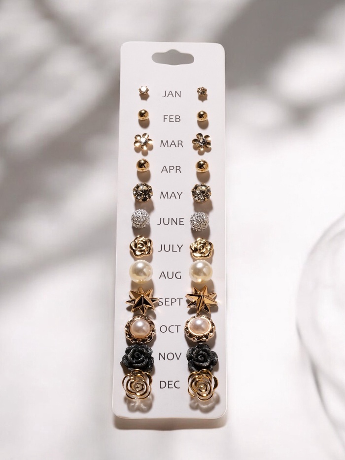 - Разнообразие и стиль: двенадцать уникальных пар с цветочной тематикой позволяют легко менять акценты в повседневном и праздничном образе.