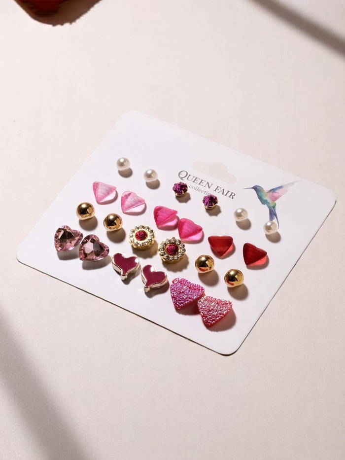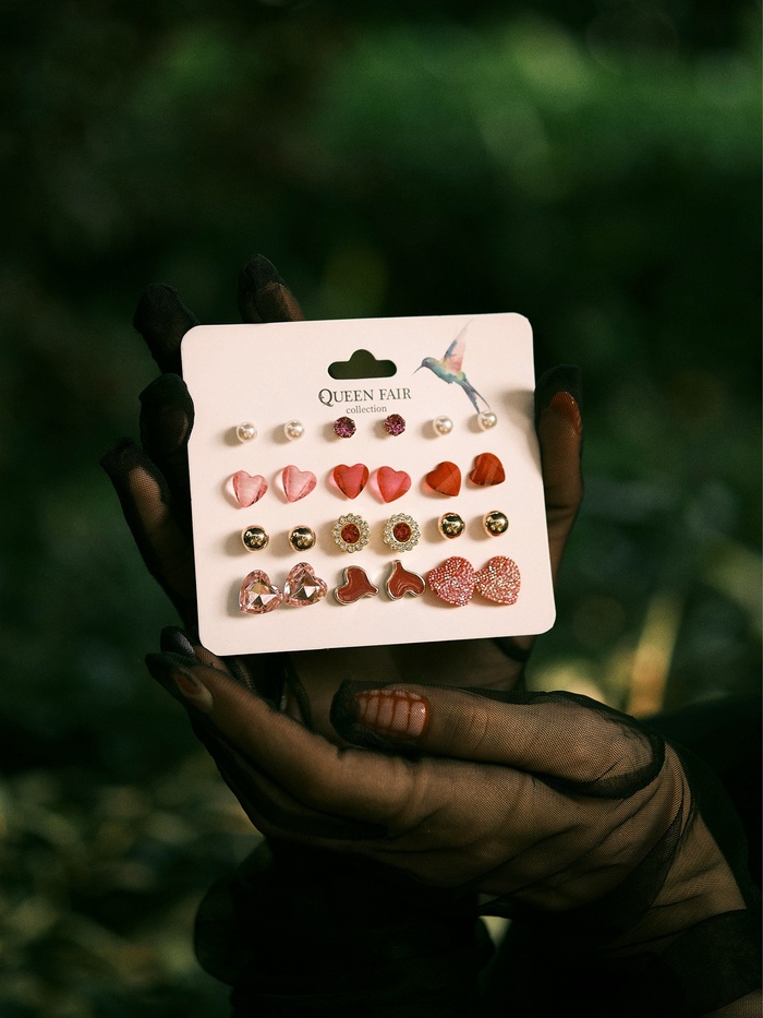 Набор из двенадцати пар изящных серьг-пусет с мотивом сердечек в нежной цветовой палитре — золотистом, красном, розовом и белом — станет универсальным украшением для женщин и девочек. Компактная длина в 1,5 см делает каждую пару комфортной для ежедневного ношения, а аккуратный дизайн подчёркивает романтичность и лёгкость образа.