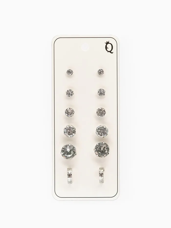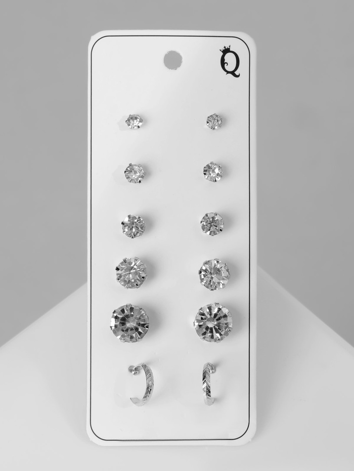 Набор из шести пар стильных серьг-пусет с округлой формой и белыми стразами на серебристой металлической основе станет универсальным дополнением к вашему образу. Компактные украшения длиной 1,2 см подходят как для женщин, так и для девочек, подчёркивая изящество и свежесть стиля.