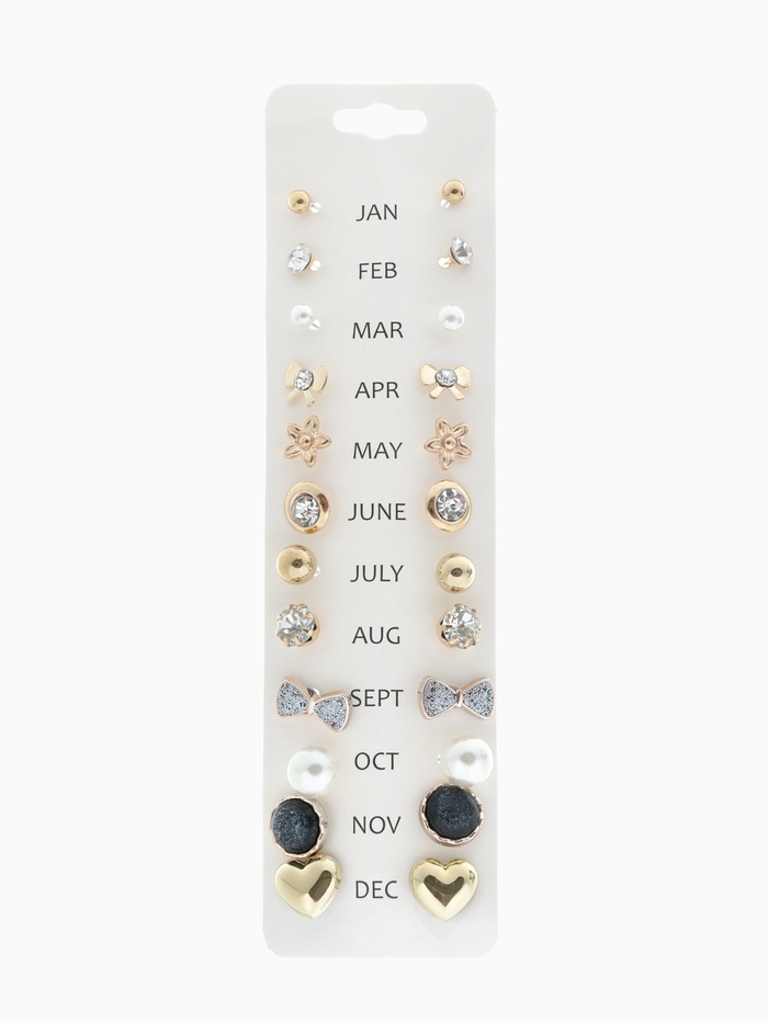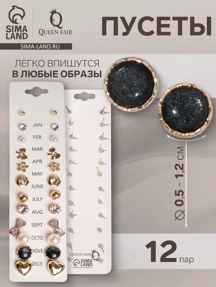 Серьги пусеты One year, 12 пар, совершенство, бело-чёрные в золоте — Характеристики