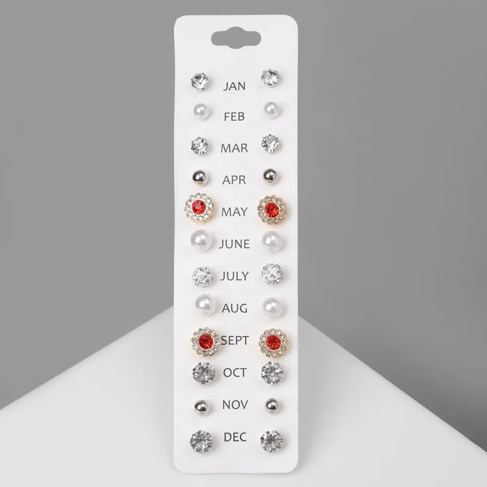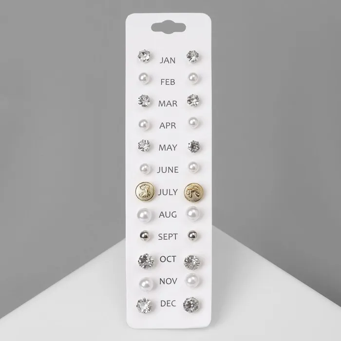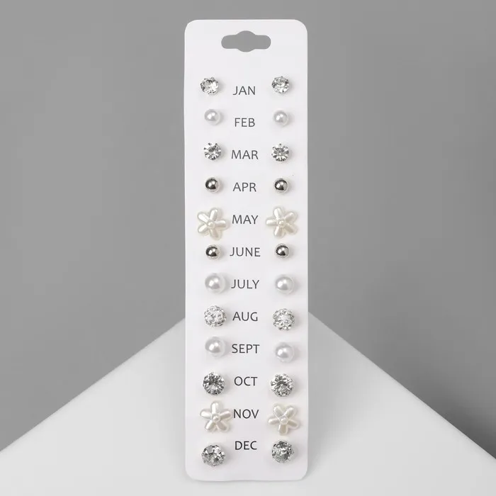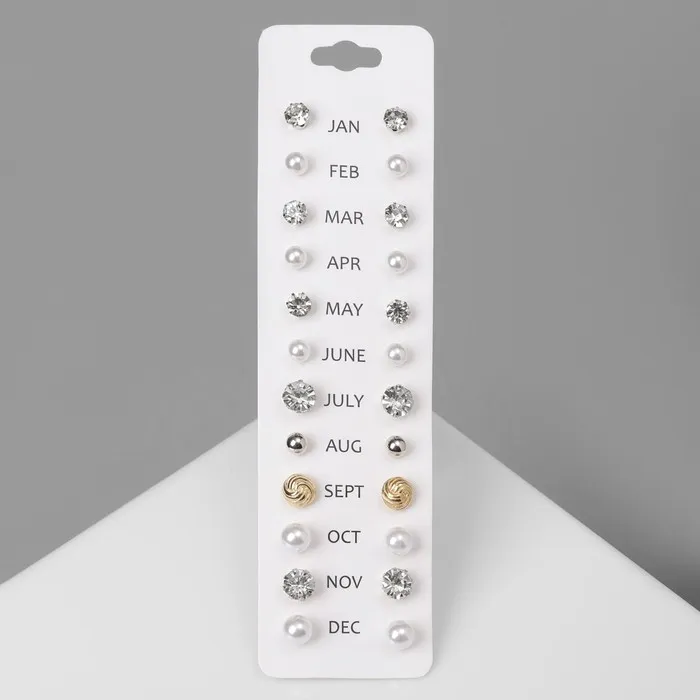 Серьги пусеты One year, 12 пар, строгий стиль, миксы — Характеристики