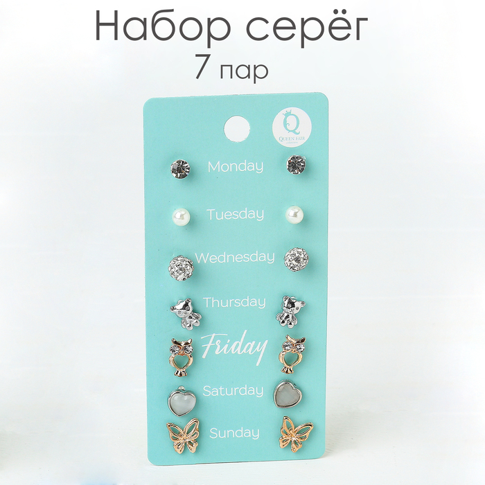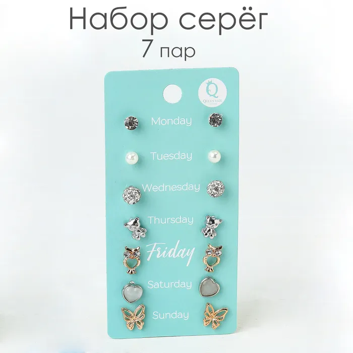 Серьги пусеты QF «На каждый день», 7 пар, набор летний день, миксы — Характеристики