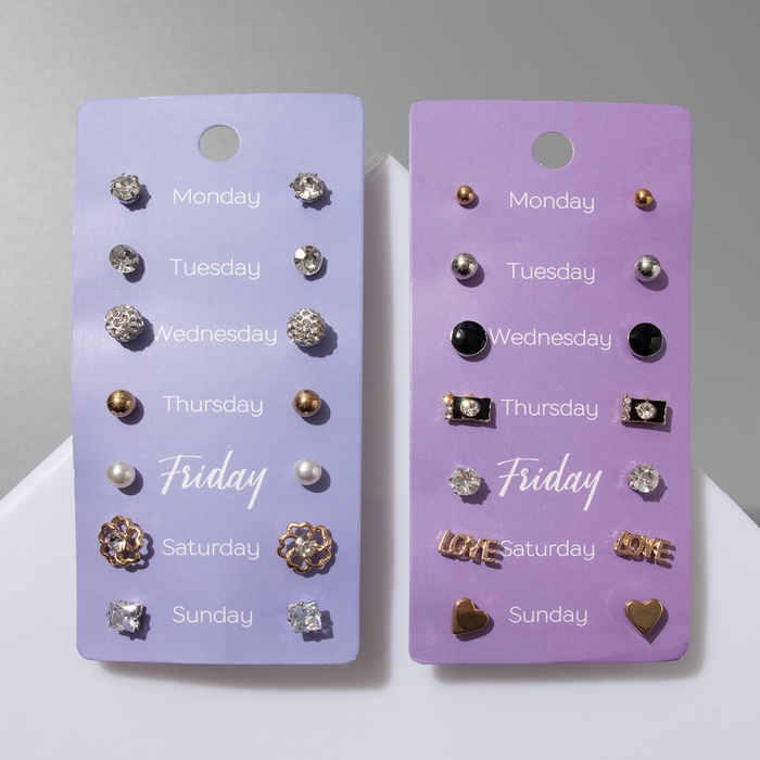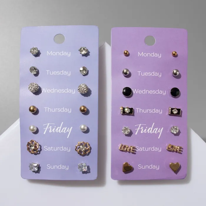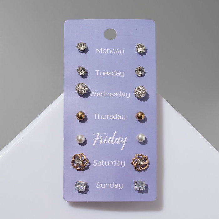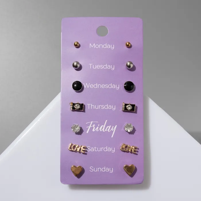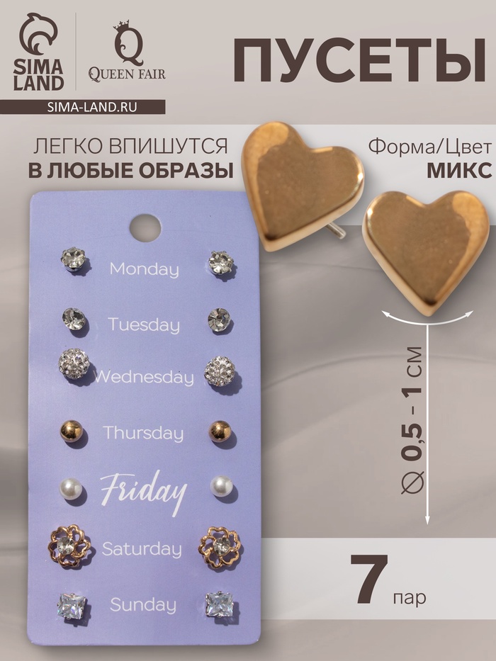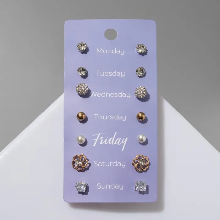 Серьги пусеты QF «На каждый день», 7 пар, набор вечерний, цвет МИКС — Характеристики