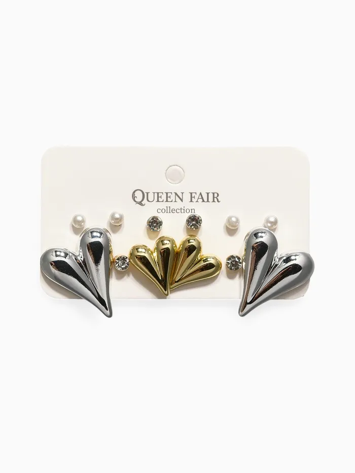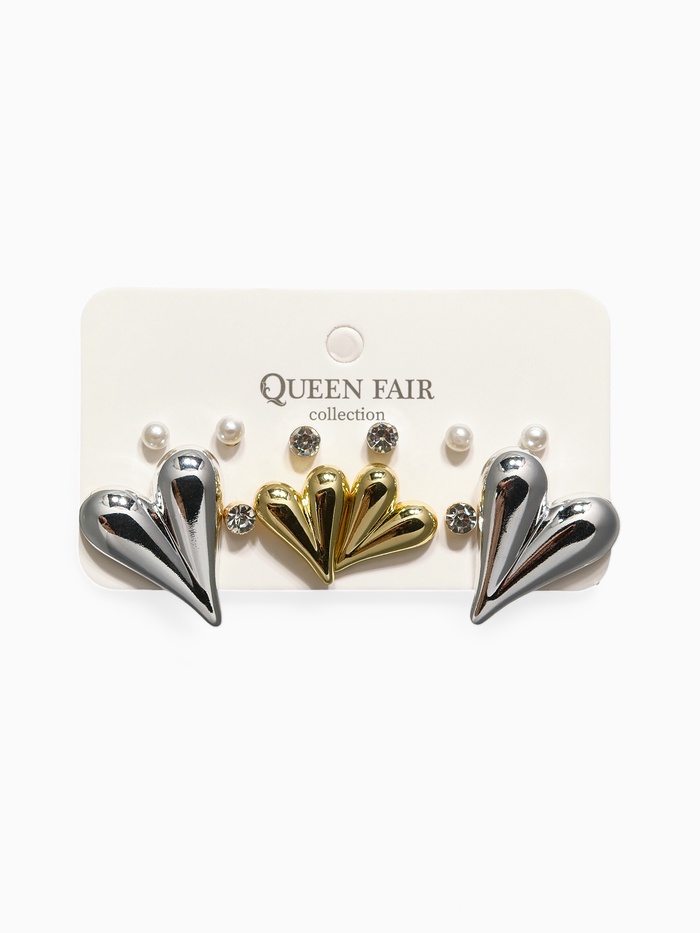 Серьги пусеты QF «Нежное сердце», набор 6 пар, бусины, цвет золото, серебро — Характеристики