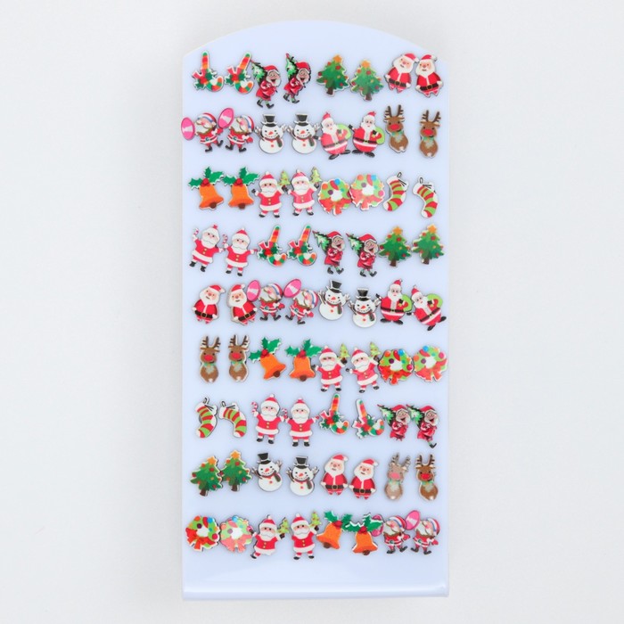 Серьги пусеты QF «Новогодние», 36 пар, ассорти, цветные в серебре — Характеристики