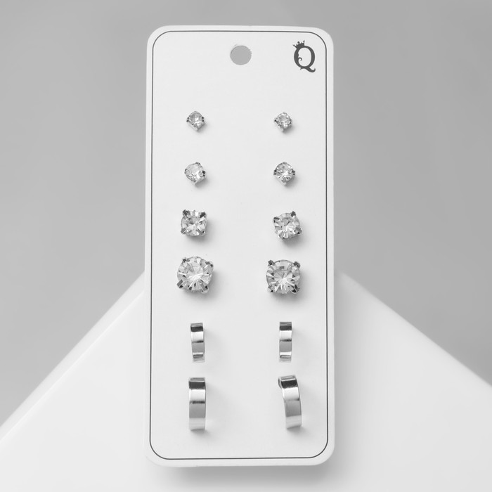 Серьги пусеты QF «Романтика», 6 пар, квадраты, белые в серебре — Характеристики
