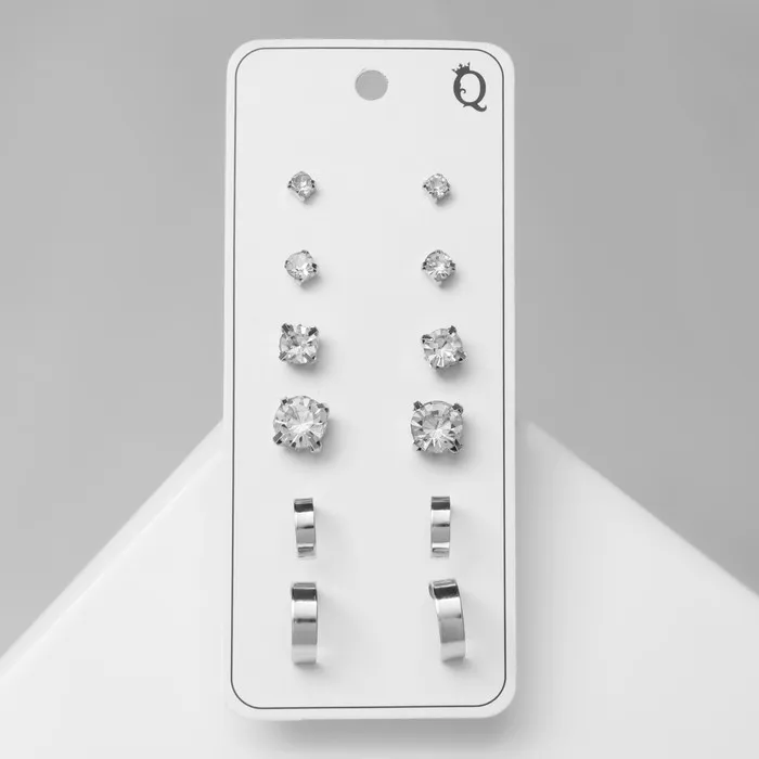 Набор из шести пар лаконичных серьг-пусет с квадратной формой и белыми стразами на серебристой металлической основе привносит в образ современную элегантность и утонченность. Компактные украшения длиной 1,2 см идеально подходят для ежедневного ношения и подчёркивают стиль как взрослых женщин, так и юных модниц.
