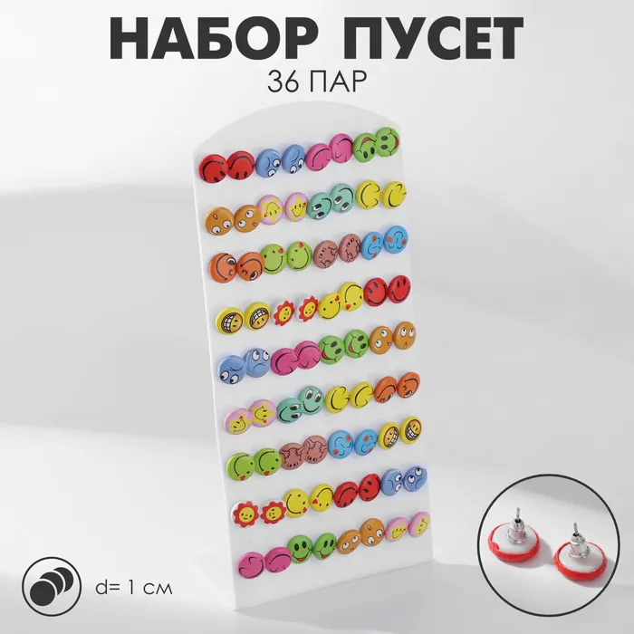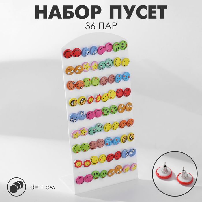 Серьги пусеты QF «Смайлы», 36 пар, цвет МИКС — Характеристики