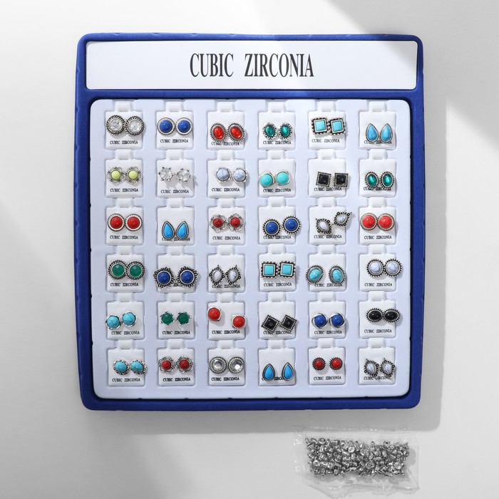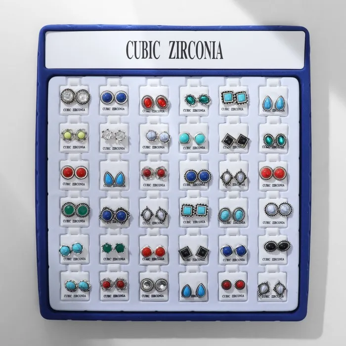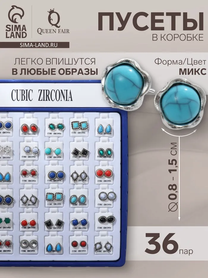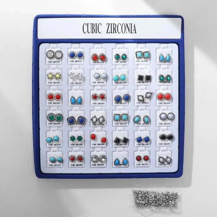 Серьги пусеты в коробке QF «Натурель», 36 пар, цвет МИКС в чернёном серебре — Характеристики