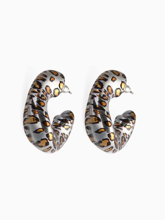 Этот комплект украшений с леопардовым принтом — выразительный акцент для тех, кто ценит стиль и оригинальность. В набор входят серьги-гвоздики с застёжкой пусет и кольцо, выполненные из лёгкого пластика с серебристым покрытием, что обеспечивает комфорт и практичность в повседневном использовании.