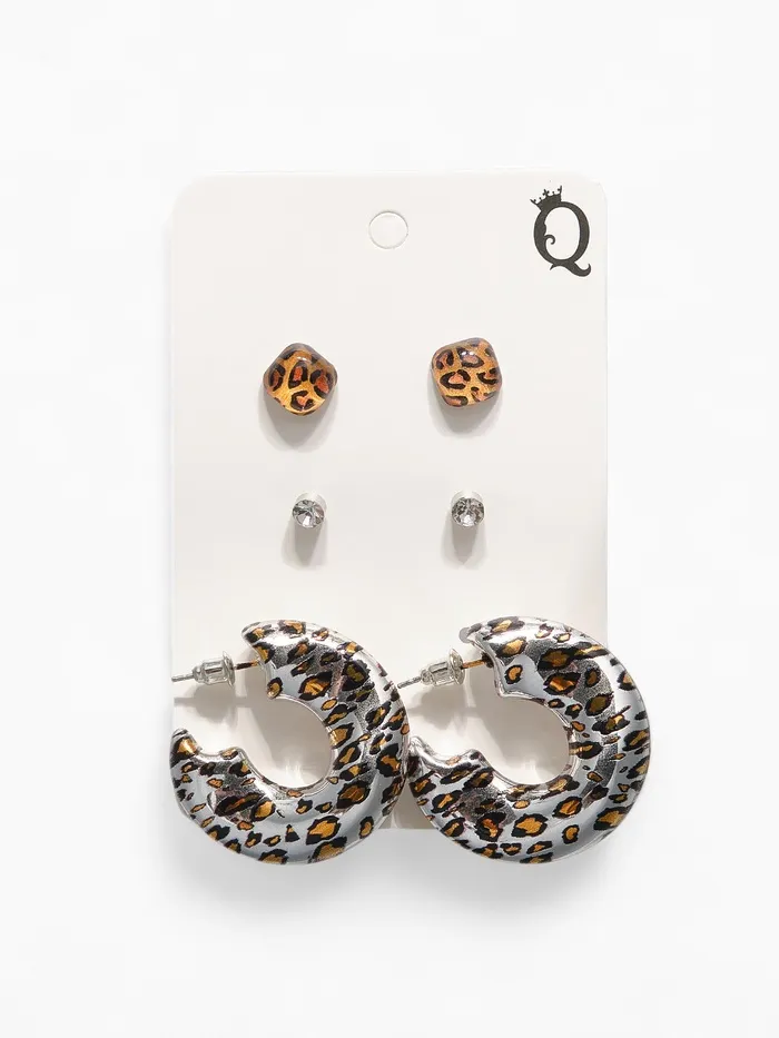 Серьги QF «Леопард», набор 3 пары, кольца, цветной в серебре — Характеристики