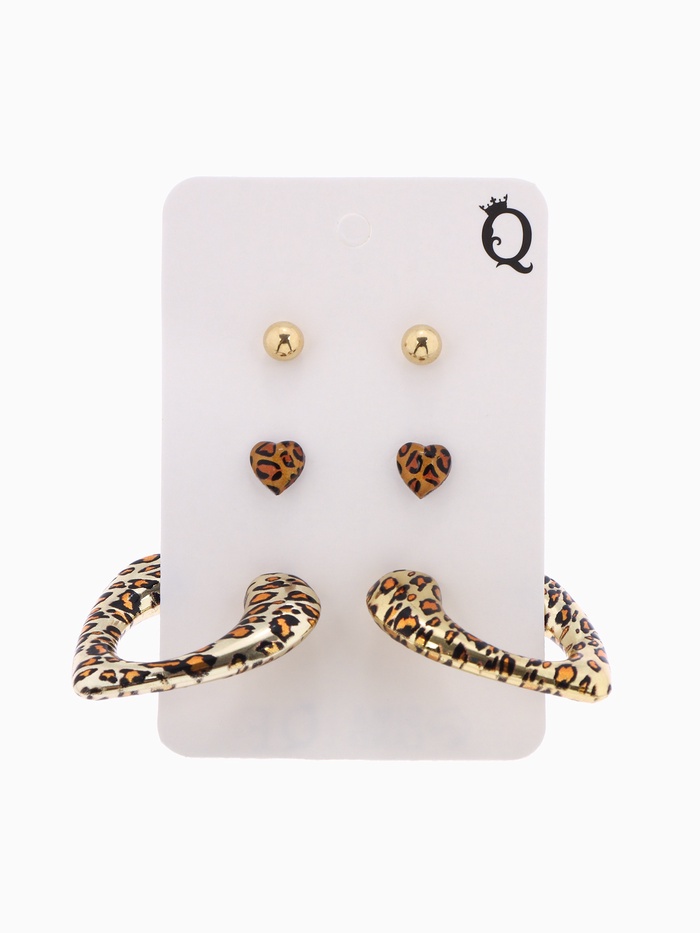 Серьги QF «Леопард», набор 3 пары, цветной в золоте — Характеристики