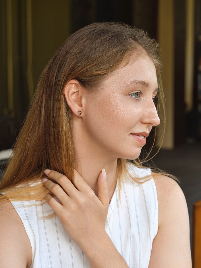 Застёжка-пусет (гвоздик) надёжно фиксирует украшения, обеспечивая комфорт и безопасность при ношении. Металлическая основа с золотым покрытием придаёт серьгам благородный блеск и устойчивость к износу, что гарантирует их долговечность и сохранение презентабельного вида.