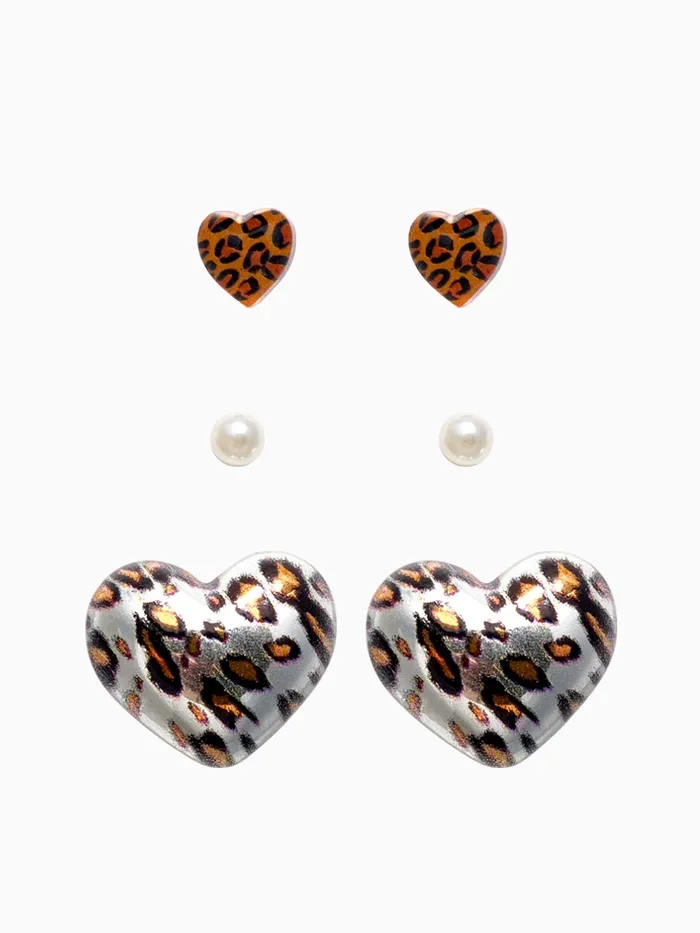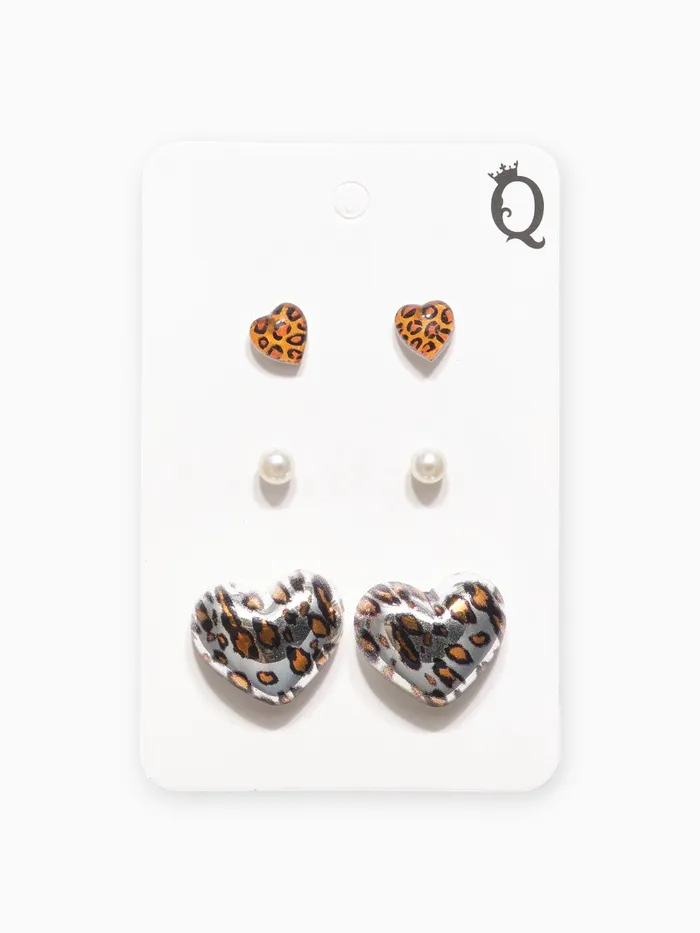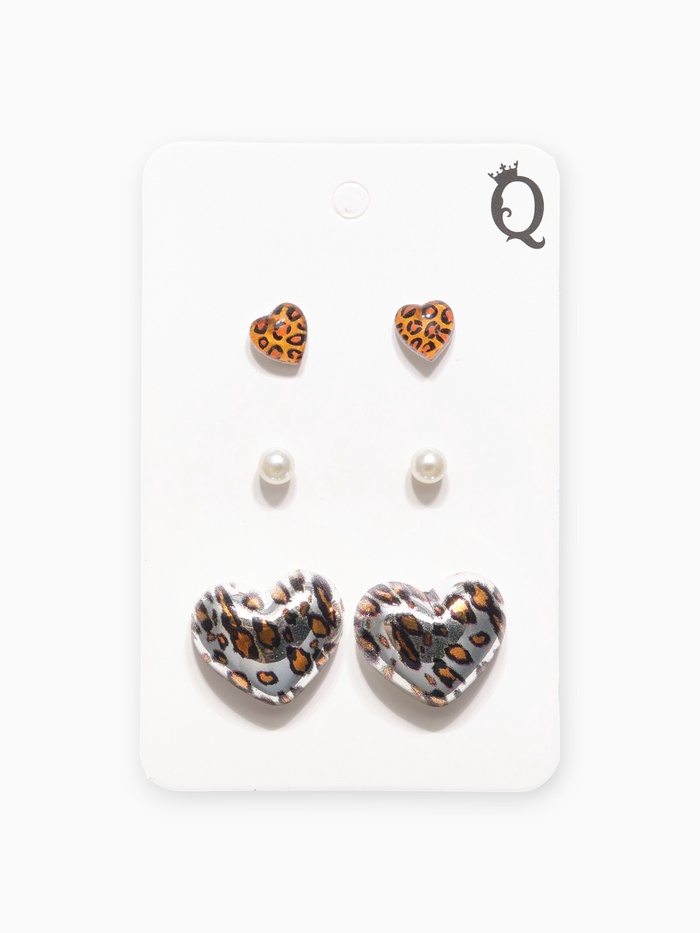Серьги QF «Леопардовое сердце», набор 3 пары, крупное, цветной в серебре — Характеристики