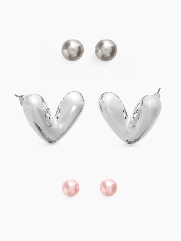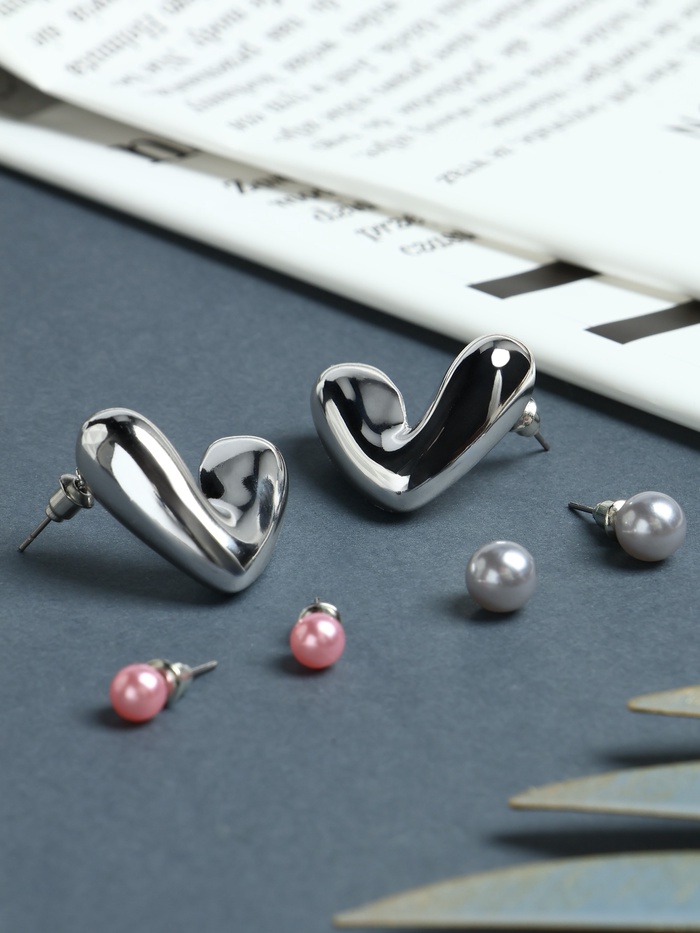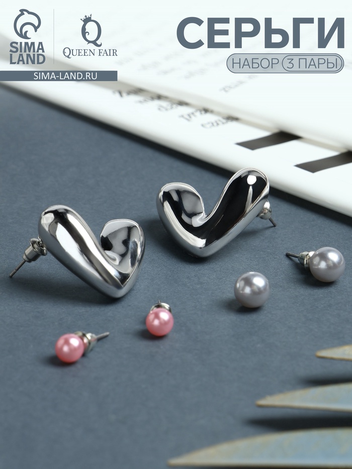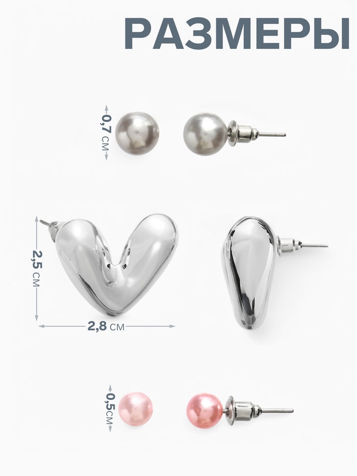 Серьги QF «Сердечки», набор 3 пары, розовый в серебре — Характеристики