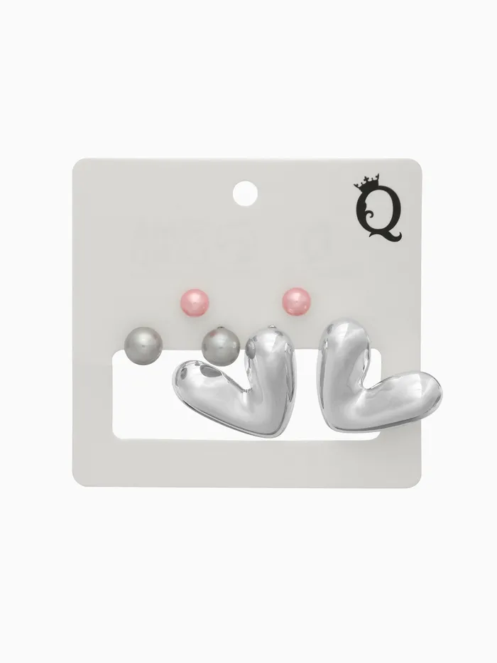 Серьги QF «Сердечки», набор 3 пары, розовый в серебре