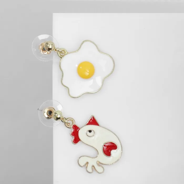 Серьги с эмалью «Что было раньше» курица и яйцо, цветные в золоте — Характеристики