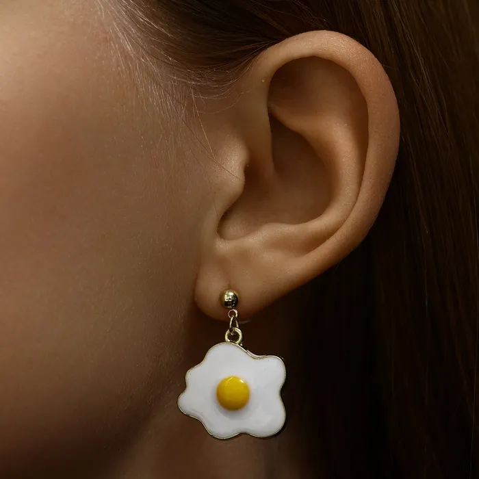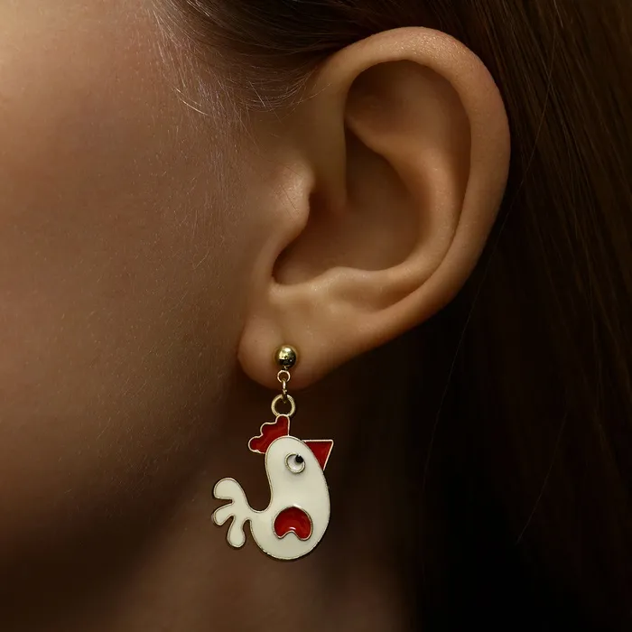 Эти серьги с эмалью — игра цвета и смысла в миниатюрном формате. Два символа, курица и яйцо, воплощённые в ярких цветах на золотистом металлическом основании, задают лёгкий и игривый акцент в вашем образе, вызывая улыбку и интерес окружающих.