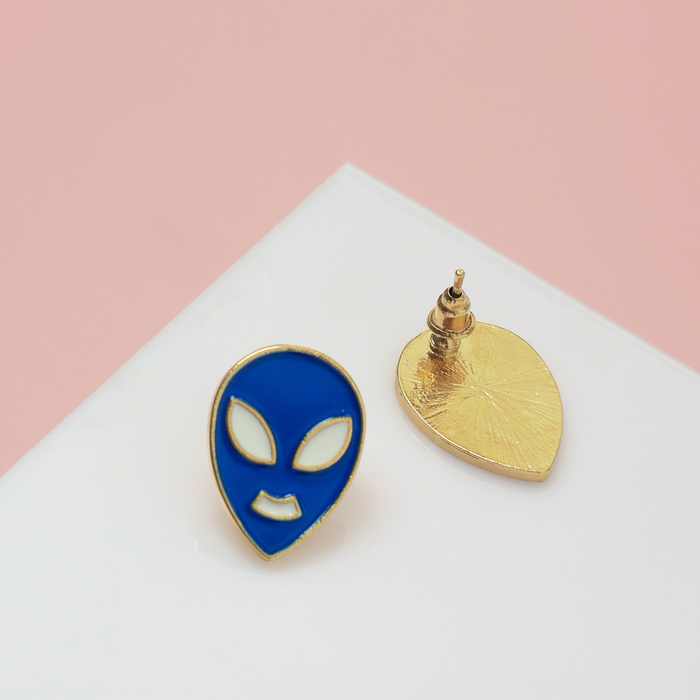 Погрузитесь в атмосферу космических приключений с удивительными серьгами в форме инопланетян, которые добавят в ваш образ нотку игривости и уникальности. Эти серьги, выполненные в сине-белых тонах с золотой фурнитурой, станут ярким акцентом, который привлечет внимание и вызовет улыбки.