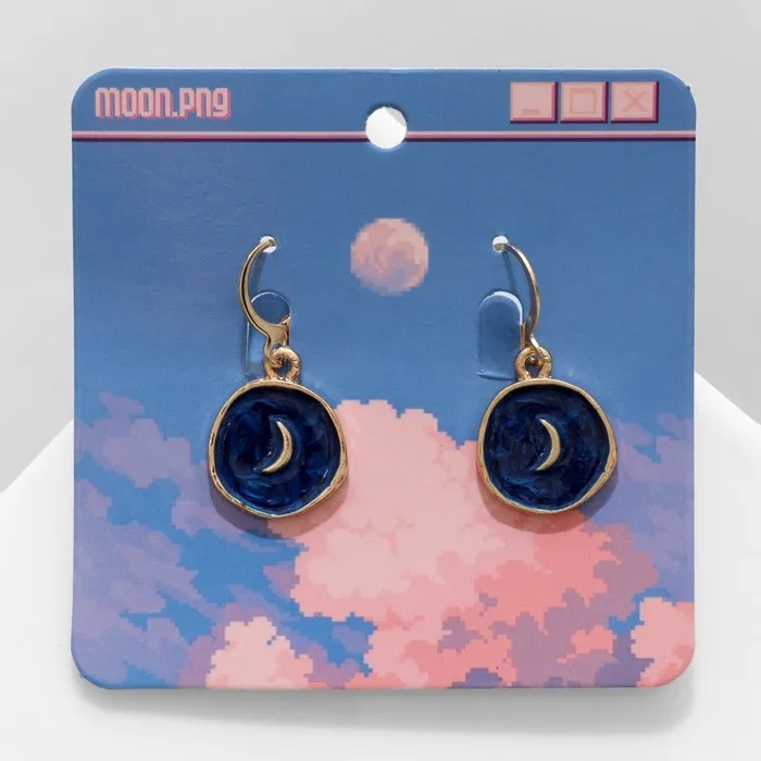 Откройте для себя мир изысканности и стиля с серьгами в форме полумесяца, выполненными в синих тонах с золотой фурнитурой. Эти серьги, вдохновленные космической тематикой, добавят в ваш образ нотку загадки и элегантности, идеально подходя как для повседневного, так и для праздничного использования.