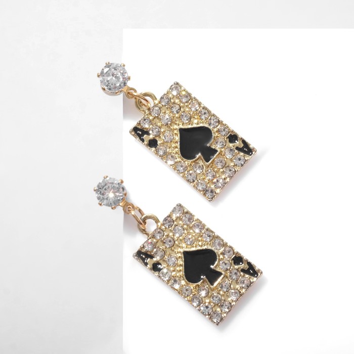 Серьги с эмалью «Карты» пики, цвет чёрно-белый в золоте — Характеристики