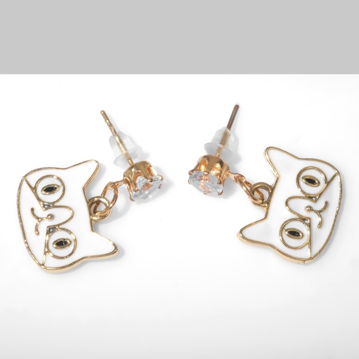 Серьги с эмалью «Котики» мультяшные, цвет чёрно-белый в золоте — Характеристики