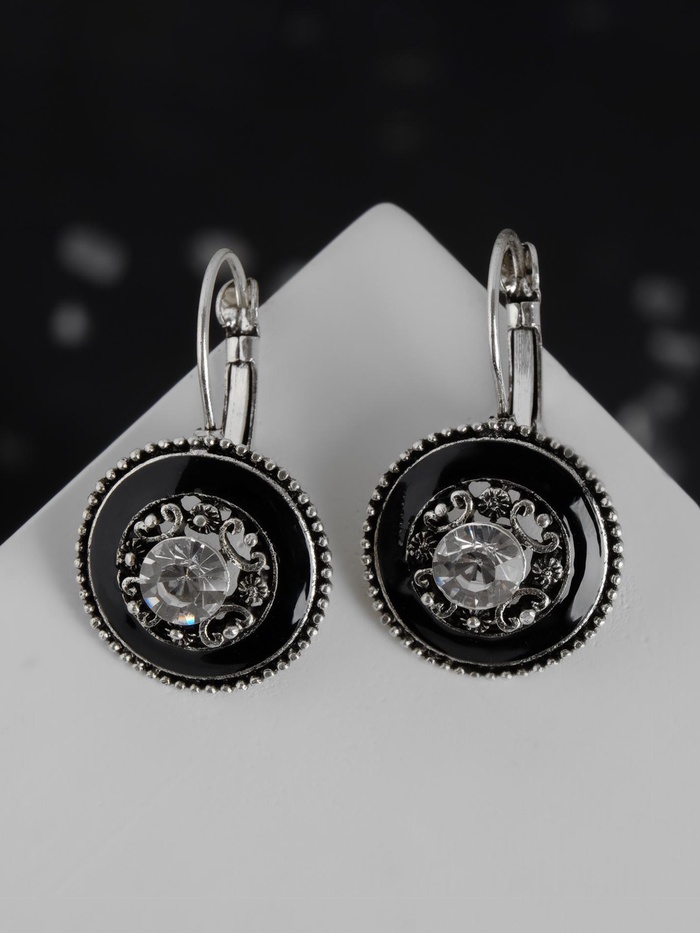 Серьги с эмалью «Круг» изящность, цвет чёрный в серебре — Характеристики