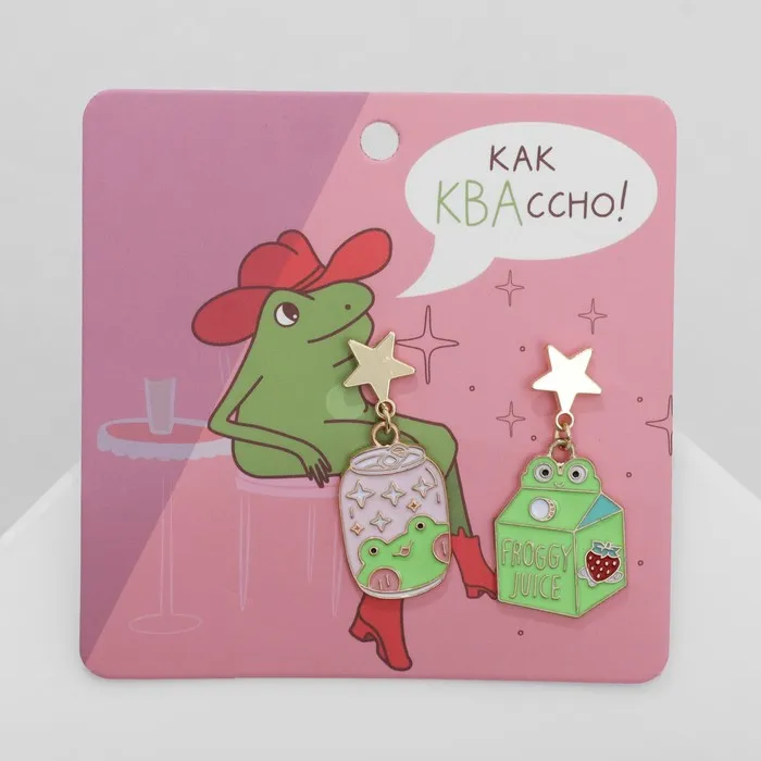 - Выразительный дизайн: образ лягушки, ассоциирующийся с волшебством и сказками, придаёт серьгам особое настроение и делает их запоминающимися.