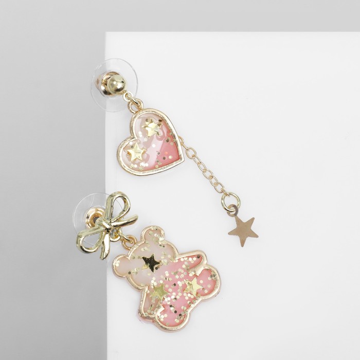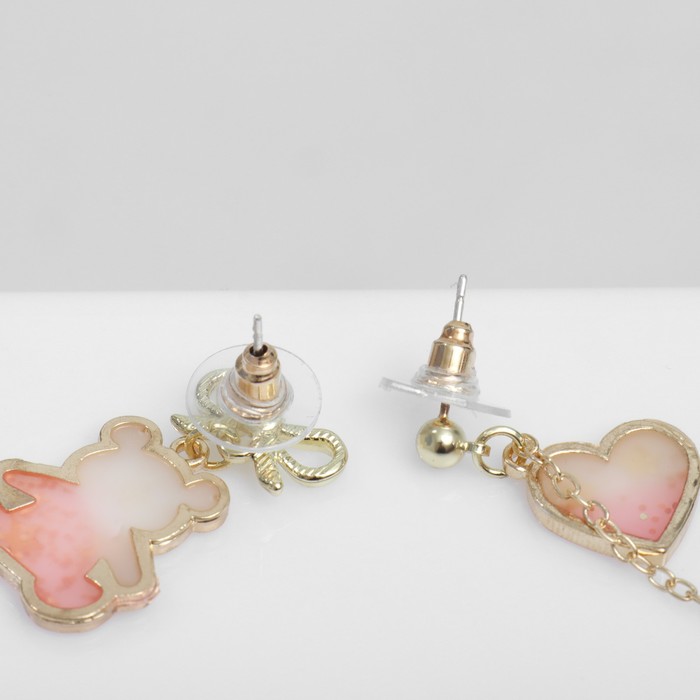 Серьги с эмалью «Мишка» и сердце, романтика, цвет бело-розовый в золоте — Характеристики