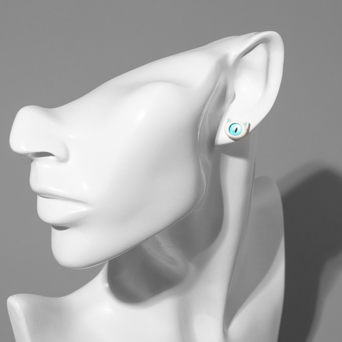 Серьги с эмалью «Монстрики» котик, цвет бело-голубой — Характеристики