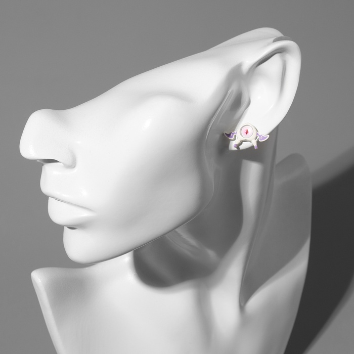 Серьги с эмалью «Монстрики» с крылышками, цвет бело-розовый — Характеристики