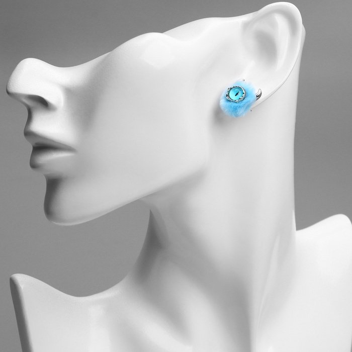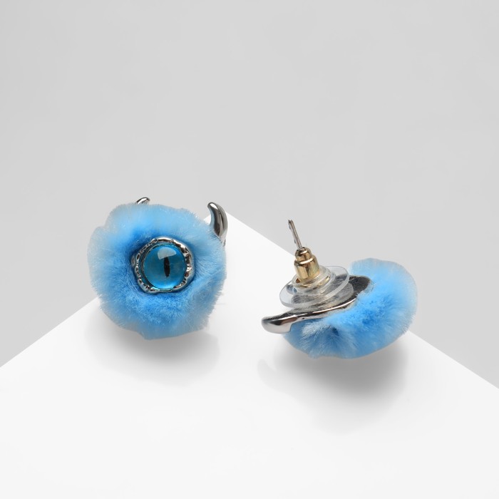 Серьги с эмалью «Монстрики» с рожками, пушистый, цвет голубой — Характеристики