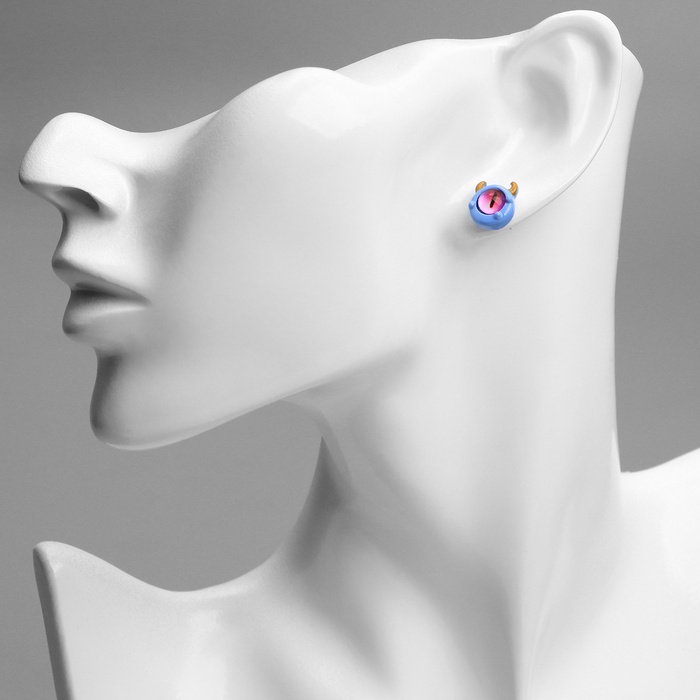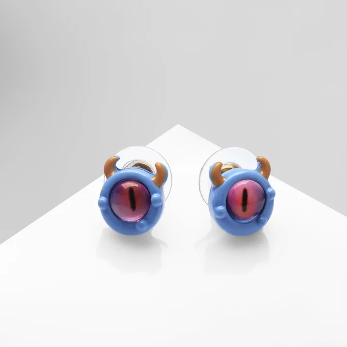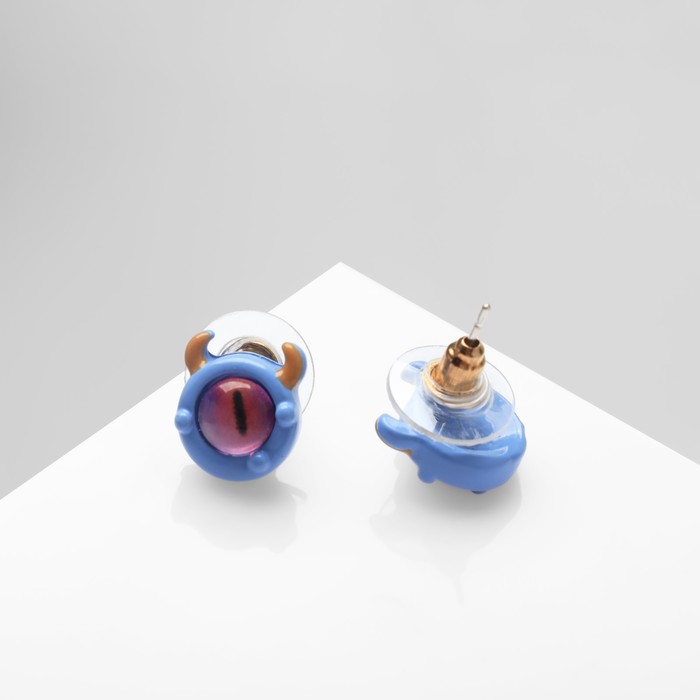 Серьги с эмалью «Монстрики» с рожками, цвет розово-голубой — Характеристики