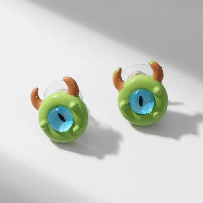 Серьги с эмалью «Монстрики» с рожками, цвет зелёный — Характеристики