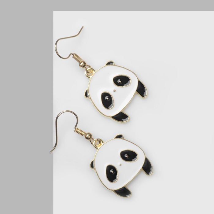 Представьте аксессуар, который воплощает нежность природы — эти серьги с эмалевыми элементами в форме пандочки, сочетающими черно-белые тона на золотистой основе. Их дизайн отражает игривость и утонченность, делая их идеальным выбором для тех, кто ценит милые детали в повседневных образах.