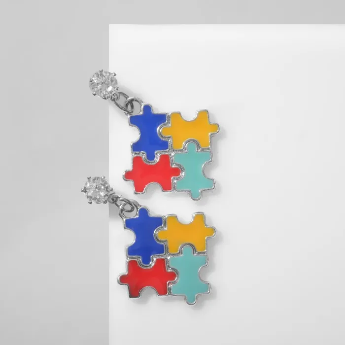Погрузитесь в мир ярких эмоций и креативного самовыражения с серьгами в виде пазла! Эти стильные украшения, выполненные из качественного металла с разноцветной эмалью и блестящими стразами, станут идеальным акцентом для вашего образа, придавая ему уникальность и индивидуальность.