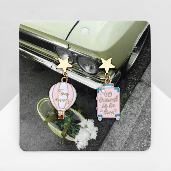 Серьги с эмалью «Путешествие» воздушный шар, цвет розовый в золоте — Характеристики