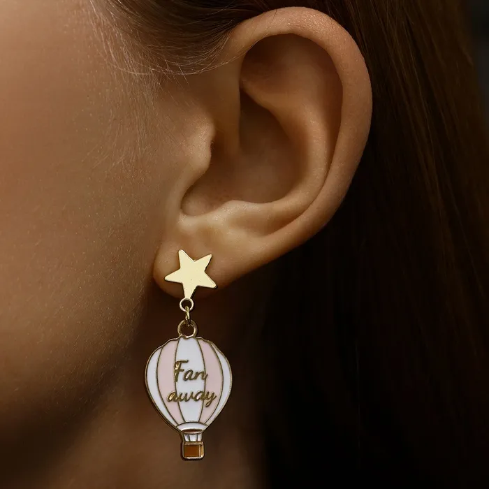Лёгкие серьги с воздушным шаром в нежно-розовом цвете — это маленькое путешествие в мир мечтаний и вдохновения. Их длина 3,5 см позволяет выгодно подчеркнуть изящность шеи и добавить образу игривую нотку, а золотистая фурнитура придаёт украшению особый шарм и благородство.